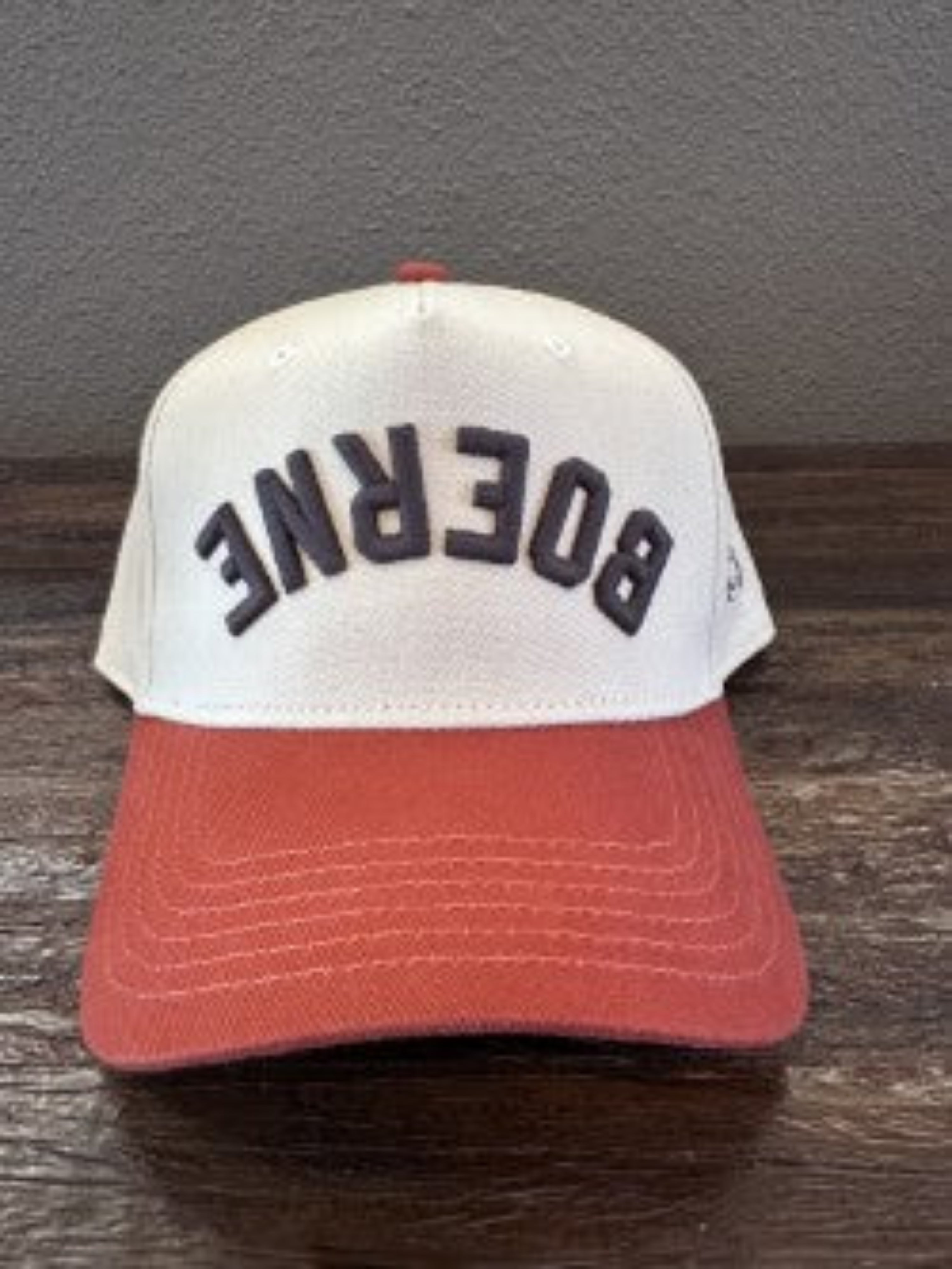 This two-tone Boerne hat features our bold upside-down BOERNE raised embroidery (Puffy), giving a classic western cap a playful twist. With a vintage cream crown and rust red brim, it’s the kind of hat that turns heads whether you’re in the Hill Country, at the rodeo, or grabbing drinks downtown.