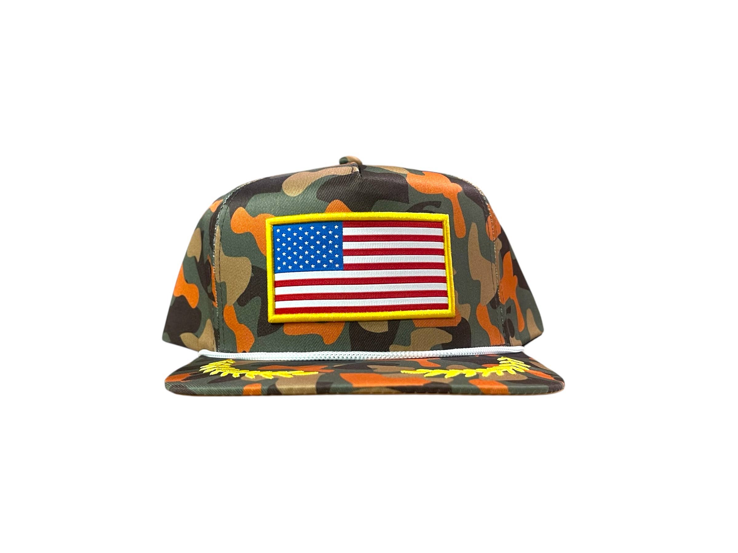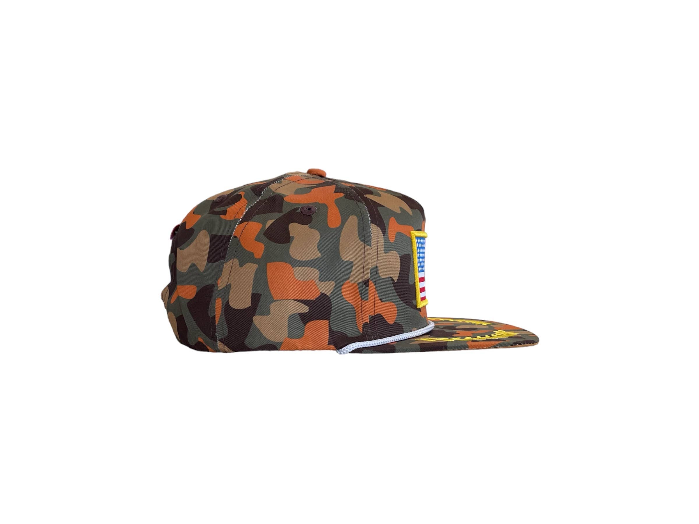 With a lightweight nylon build, structured mid-height crown, and adjustable snapback closure, this hat delivers all-day comfort and durability. The camo colorway paired with a crisp white rope detail gives it that classic outdoor look that never goes out of style.