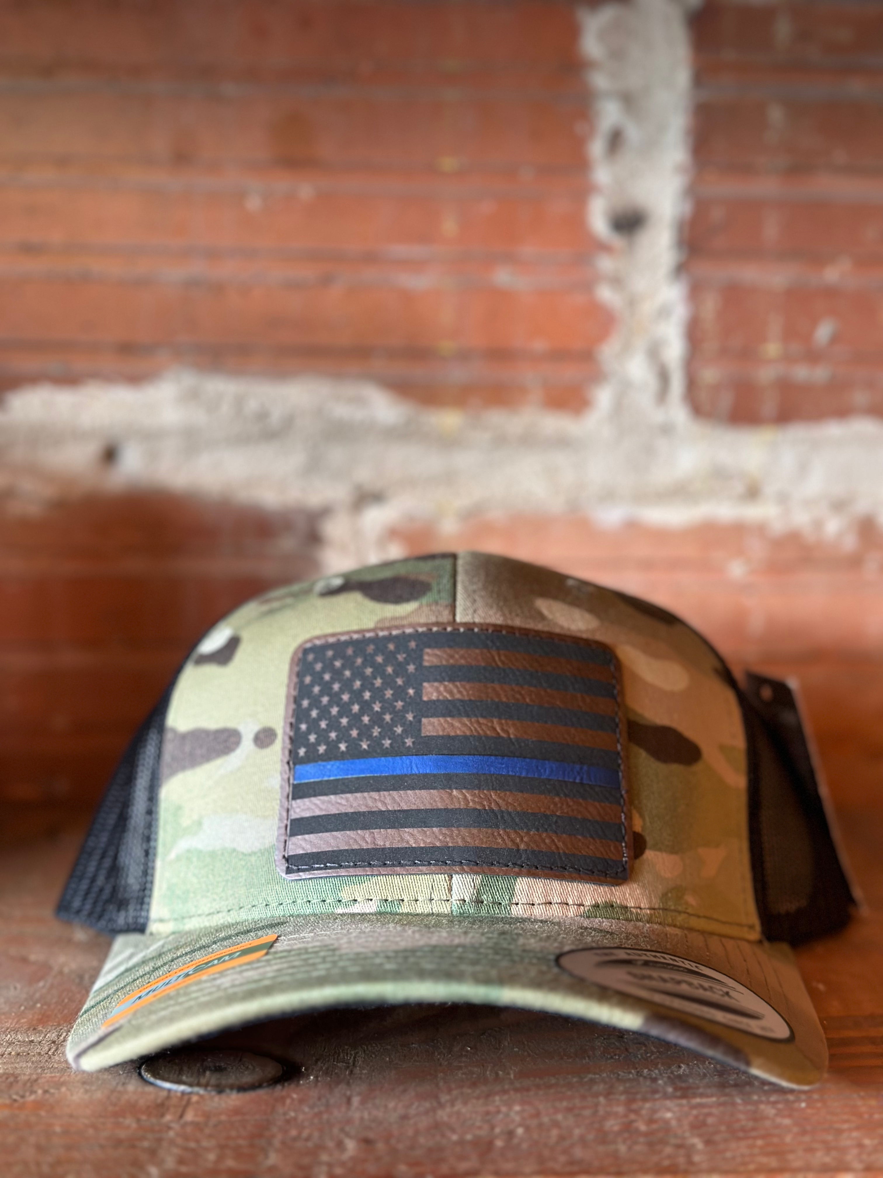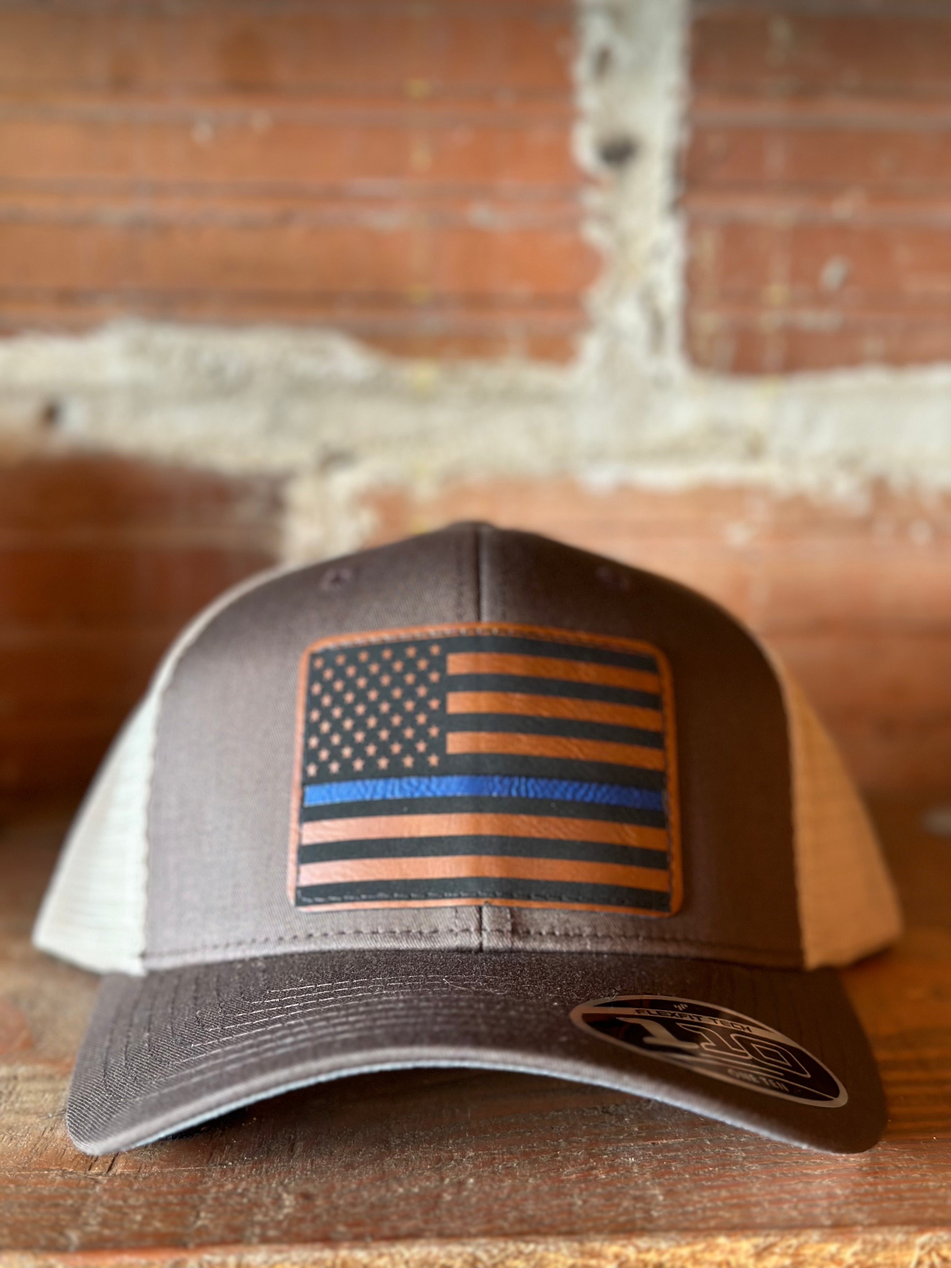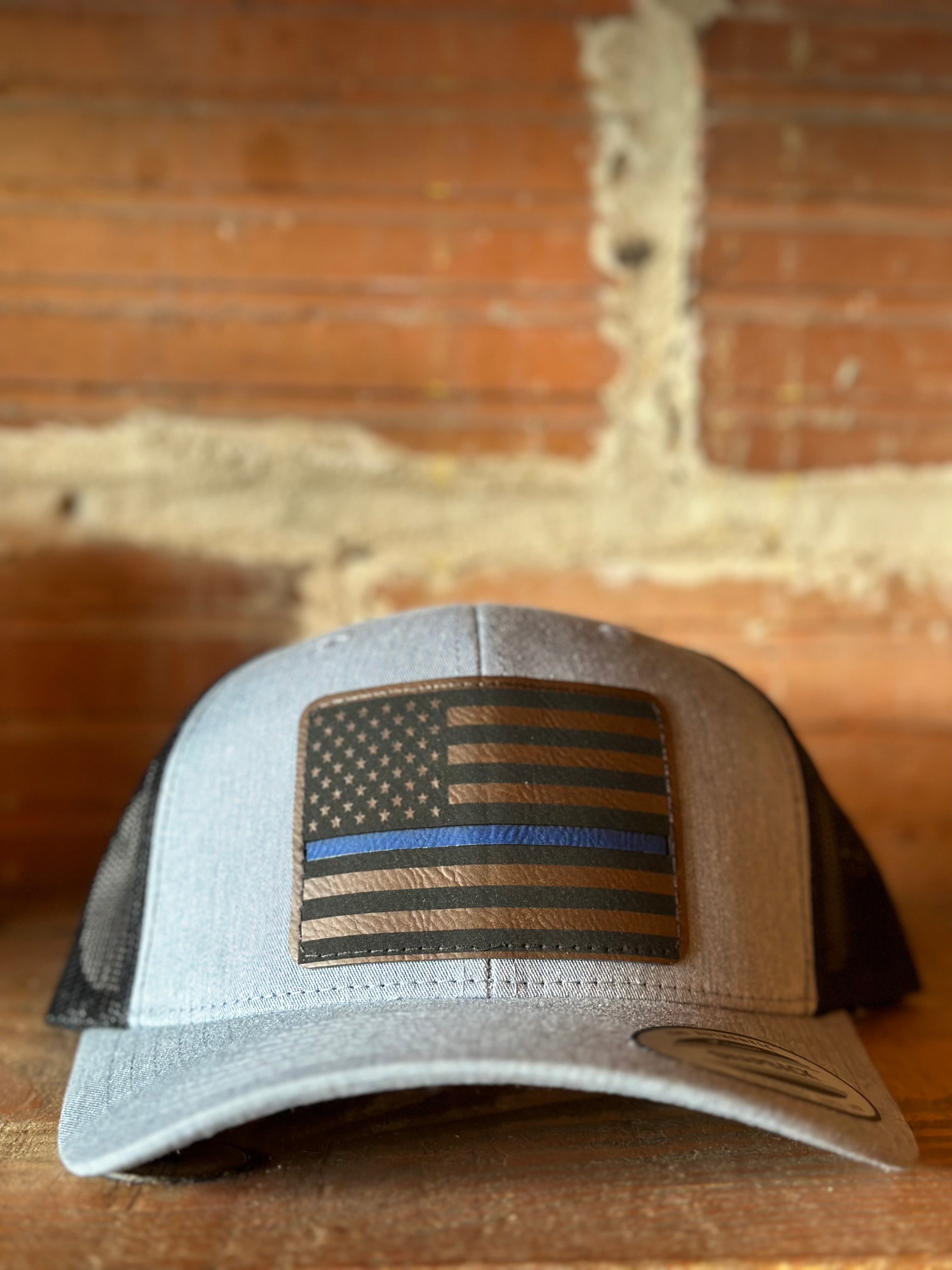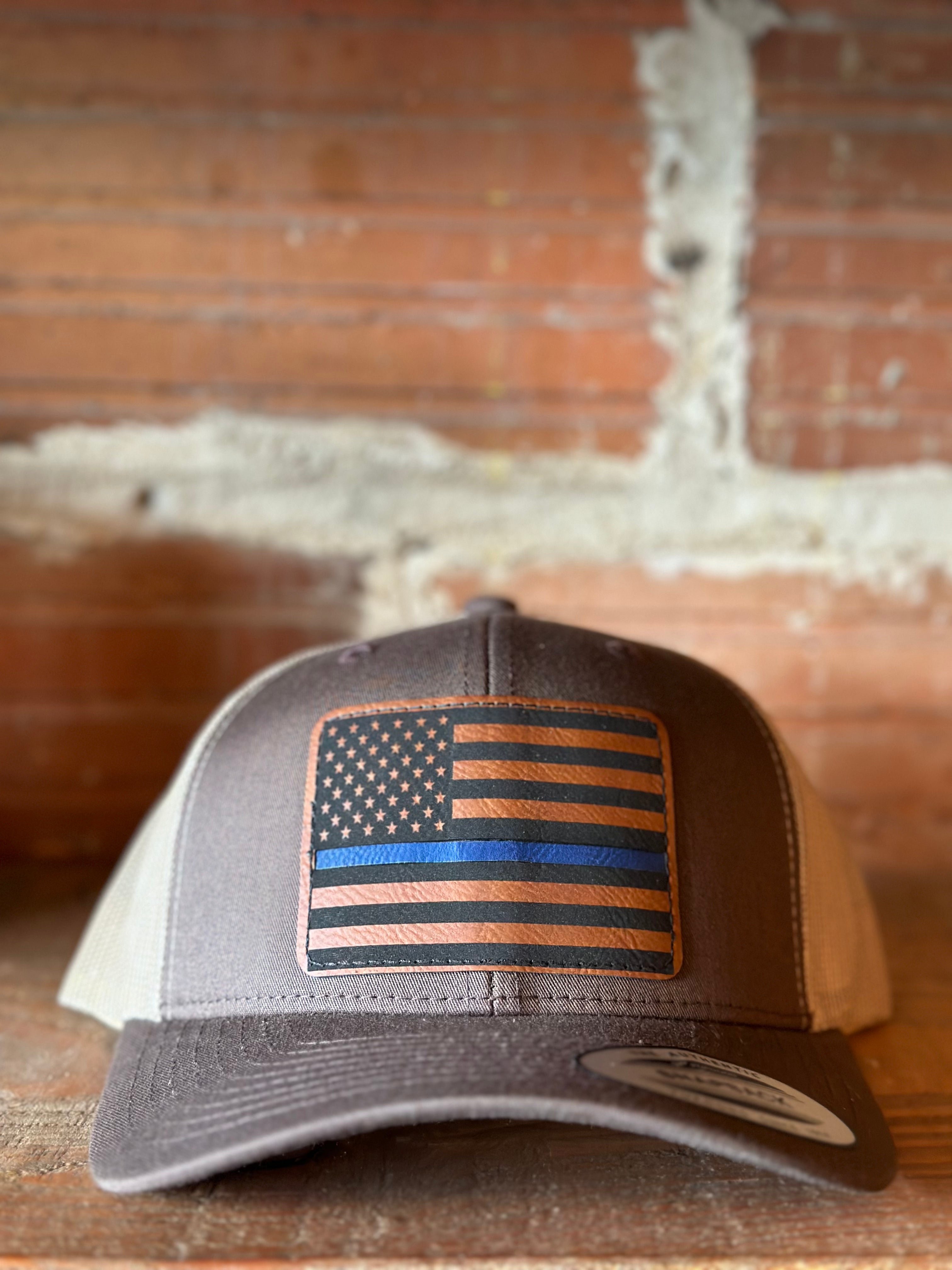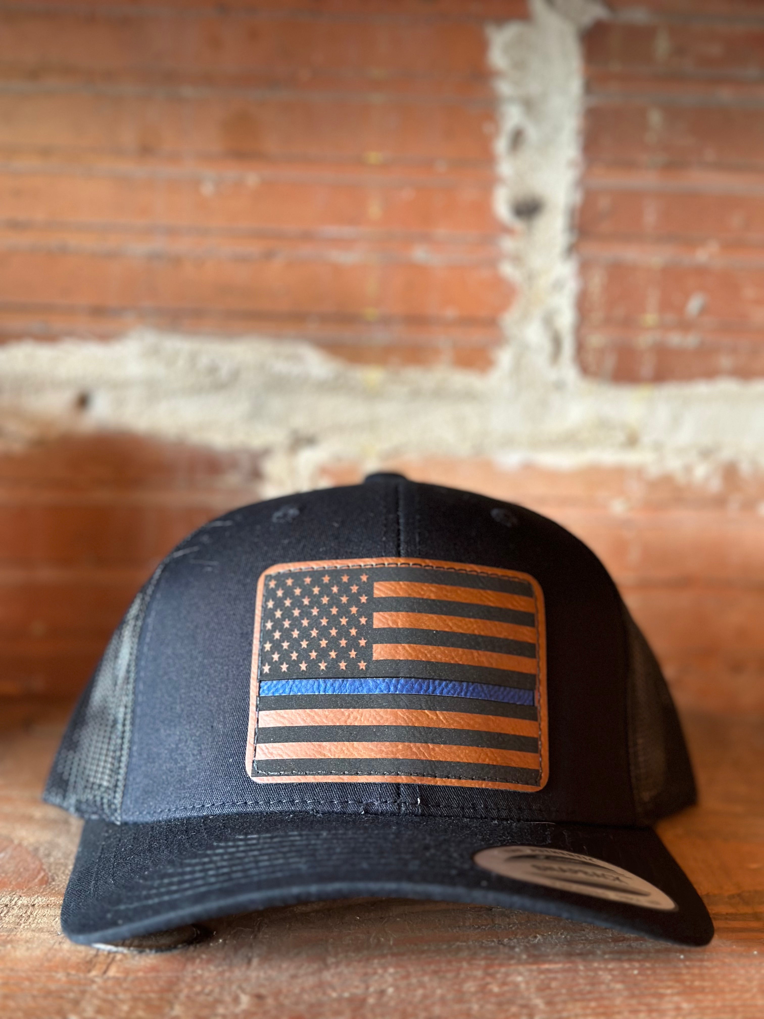 Blue Line Flag Leather Patch Hat